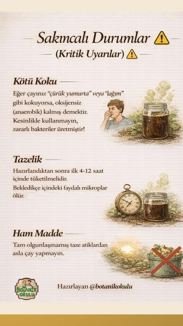 Kompost çayı canlı bir üründür, bu yüzden burnunuz en iyi rehberinizdir: