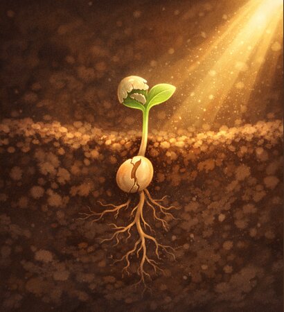 Su ve sıcaklığın sihirli dokunuşu. İlk filizin kabuğunu kırış hikayesi. |